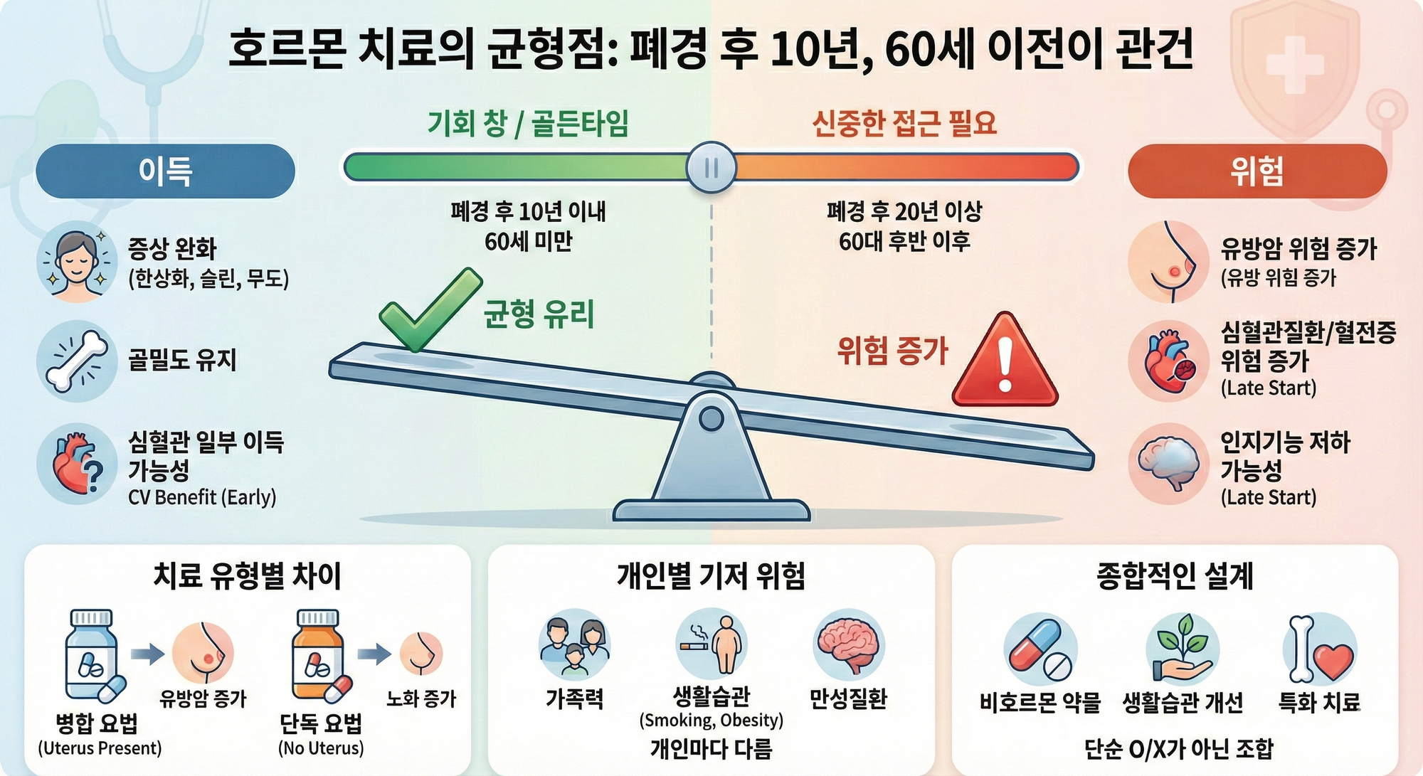 연령·시점·기저 위험에 따라 달라지는 호르몬 치료의 균형점