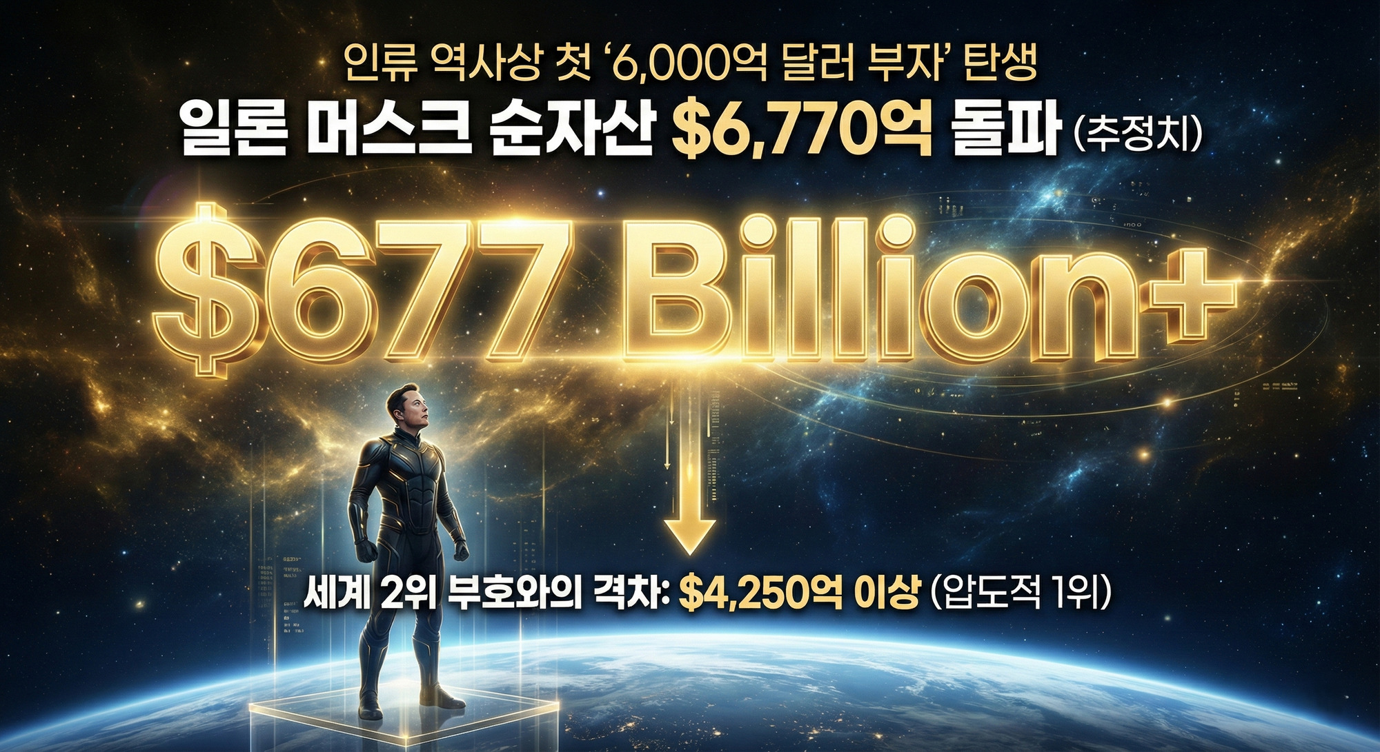 일론 머스크가 순자산 6,000억 달러(약 800조 원)를 넘어서는 사상 첫 인물이 된 것으로 전해졌다. 16일(현지 시각 기준) 기준 머스크의 재산은 약 6,770억 달러 수준으로 추정되며, 이는 세계 2위 부호와의 격차를 4,250억 달러 이상 벌려 놓은 규모다.